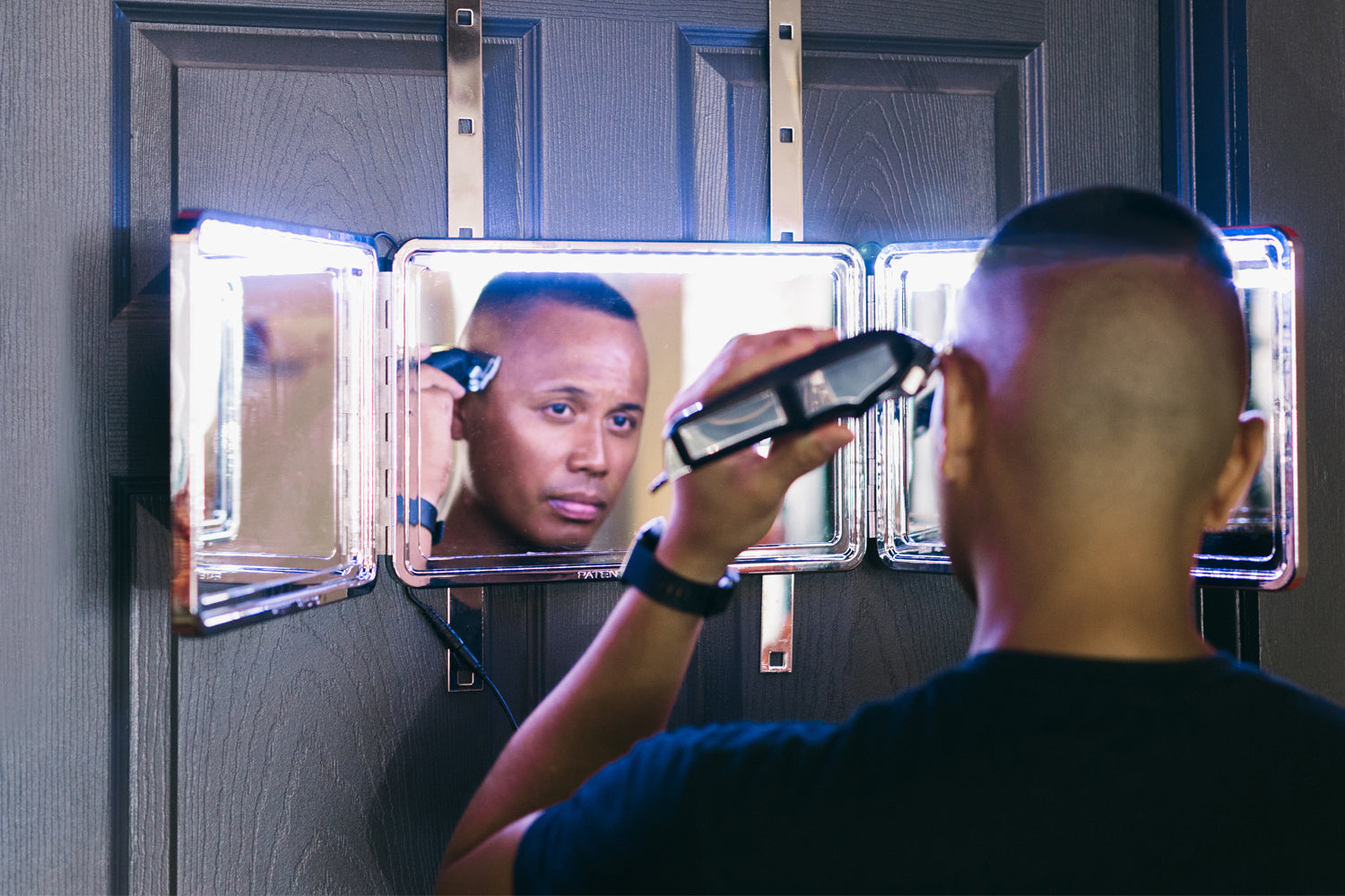 I cut my hair every week and to save money, I started to cut my own hair now. I've been doing the "one hand" method. Meaning 1 hand holding onto the mirror and the other holding the clipper.
